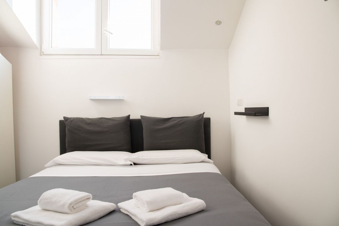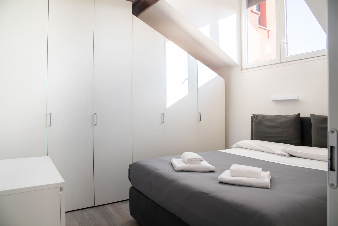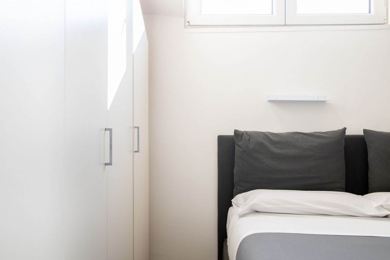 L’alloggio è ideale per 2 persone. La camera da letto matrimoniale è silenziosa e confortevole, progettata per garantire un riposo di qualità dopo una giornata in città. La zona giorno è funzionale e ben distribuita, con una cucina completamente attrezzata che consente di gestire il soggiorno in totale autonomia. Il bagno moderno, pulito e ben rifinito, completa l’esperienza con comfort essenziali e standard elevati.