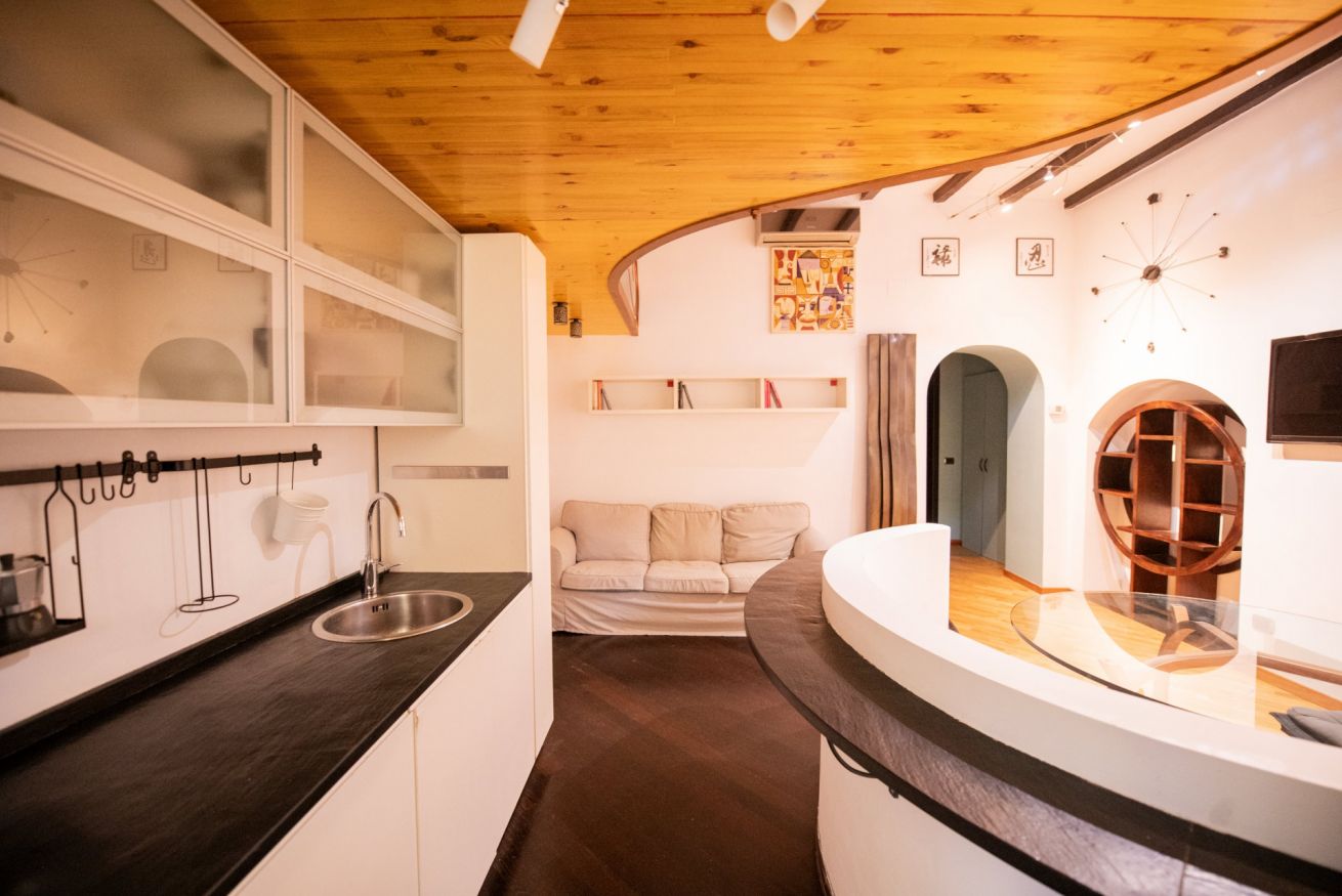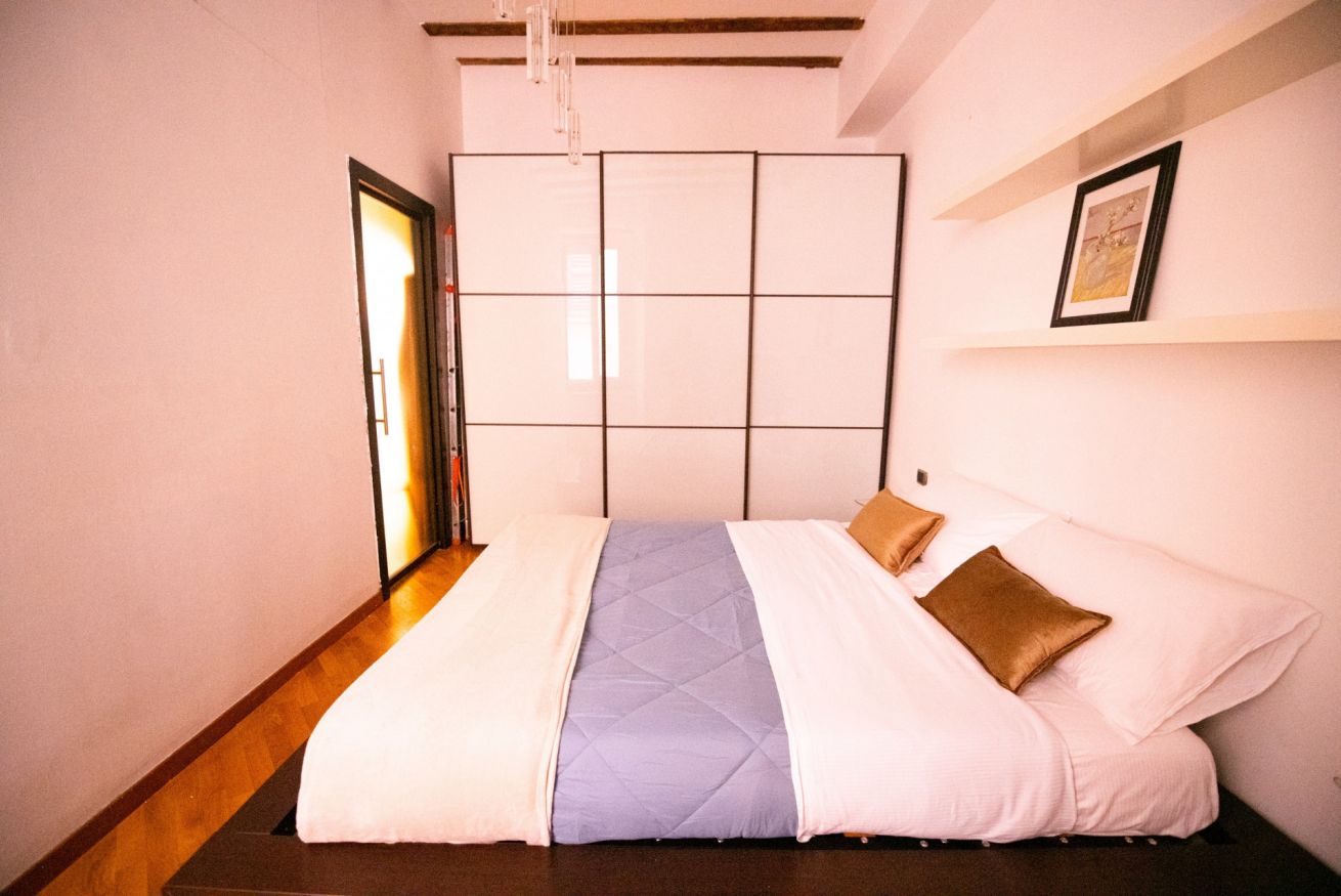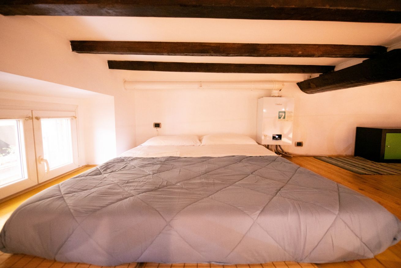 Questo loft è un mix perfetto di stile e funzionalità. Il pezzo forte? Un elegante soppalco in legno con un futon matrimoniale che può ospitare comodamente due persone, ideale per una coppia o per due amici in cerca di una soluzione originale. L’ambiente è studiato per offrire il massimo del comfort in ogni stagione: caldo e accogliente d’inverno, fresco e ventilato d’estate.