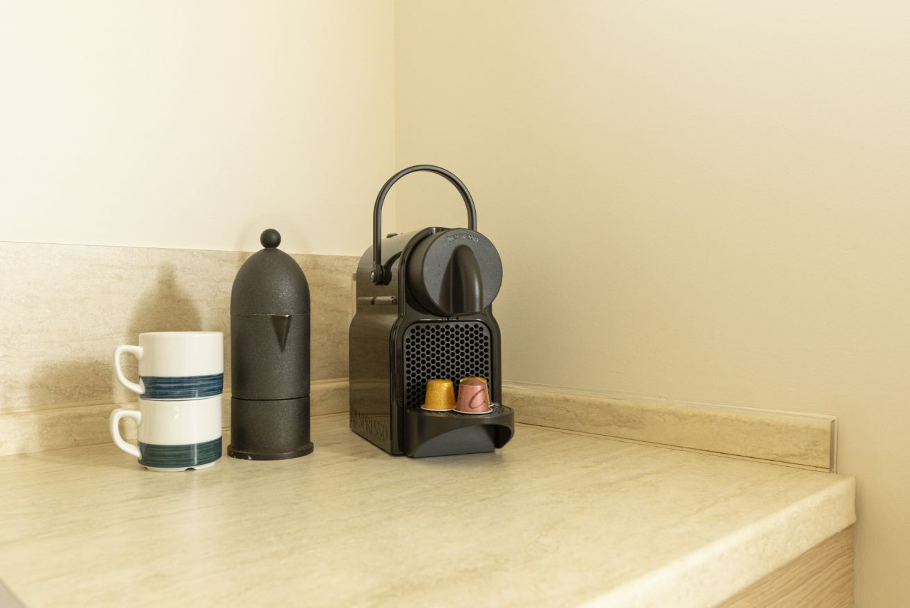 La cucina è completamente attrezzata e pronta per ispirare la tua creatività culinaria: piano cottura, forno a microonde, frigorifero, macchina del caffè e tutto l’occorrente per preparare una colazione veloce o una cena casalinga in pieno stile italiano. Immagina di iniziare la giornata con un caffè caldo, aprendo le finestre e respirando l’energia della città che si sveglia.
