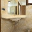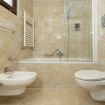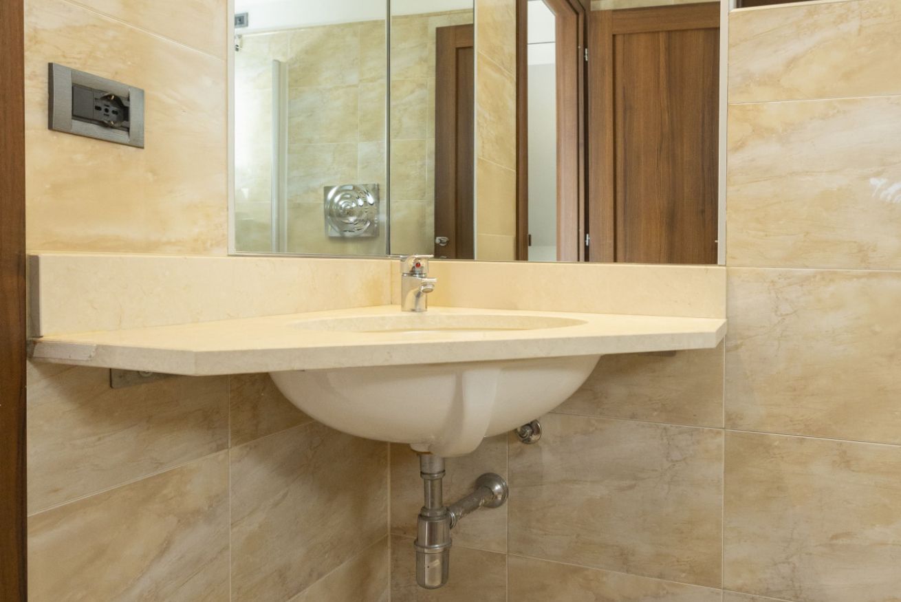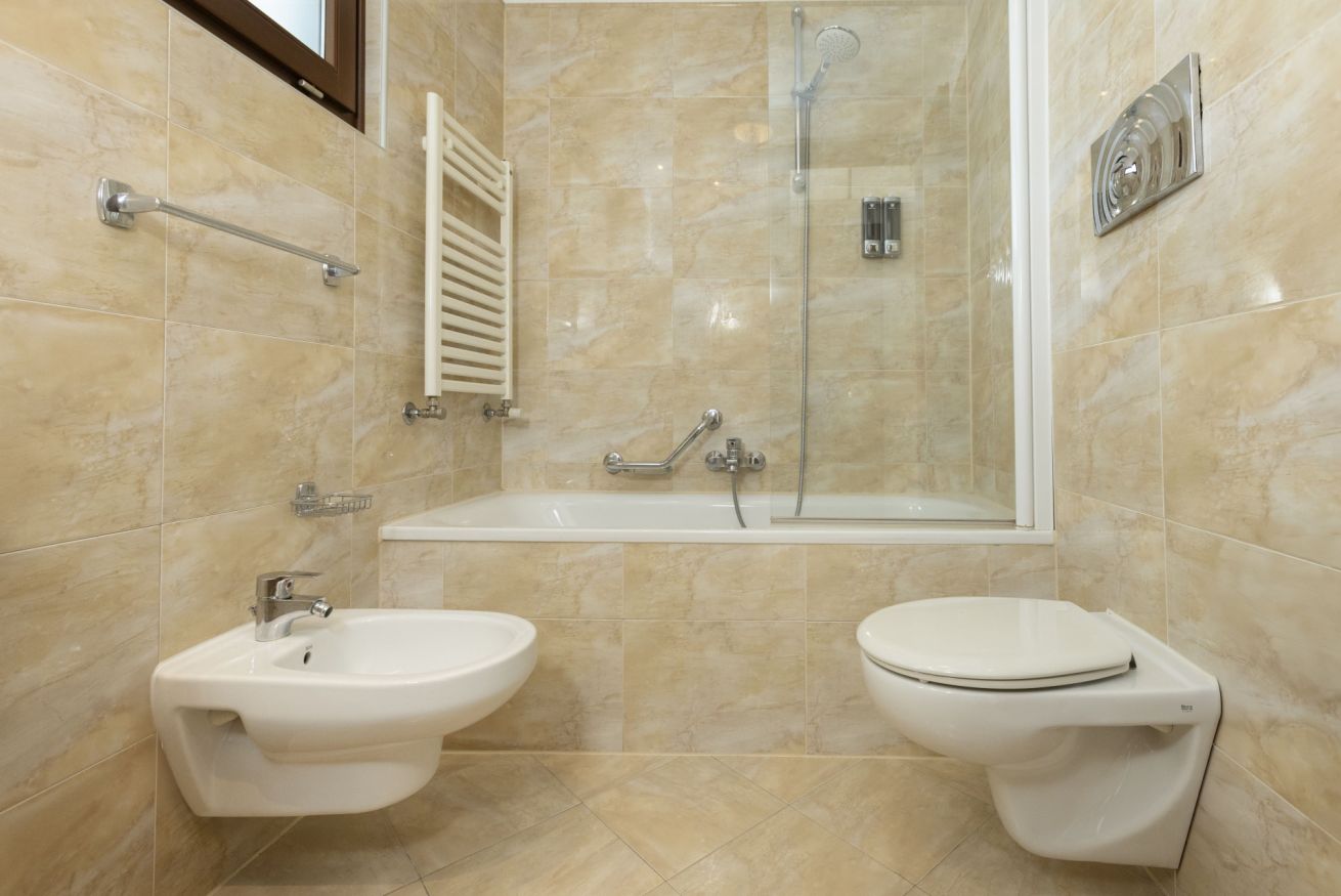 Ampio e moderno, rivestito con eleganti piastrelle color crema, offre una pratica vasca con doccia, asciugamani morbidi e set di cortesia. Dopo una giornata di camminate tra le vie del centro o di impegni professionali, concediti un momento di benessere sotto il getto rigenerante della doccia.